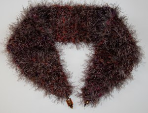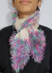 Scarves made with various crocheted yarn.