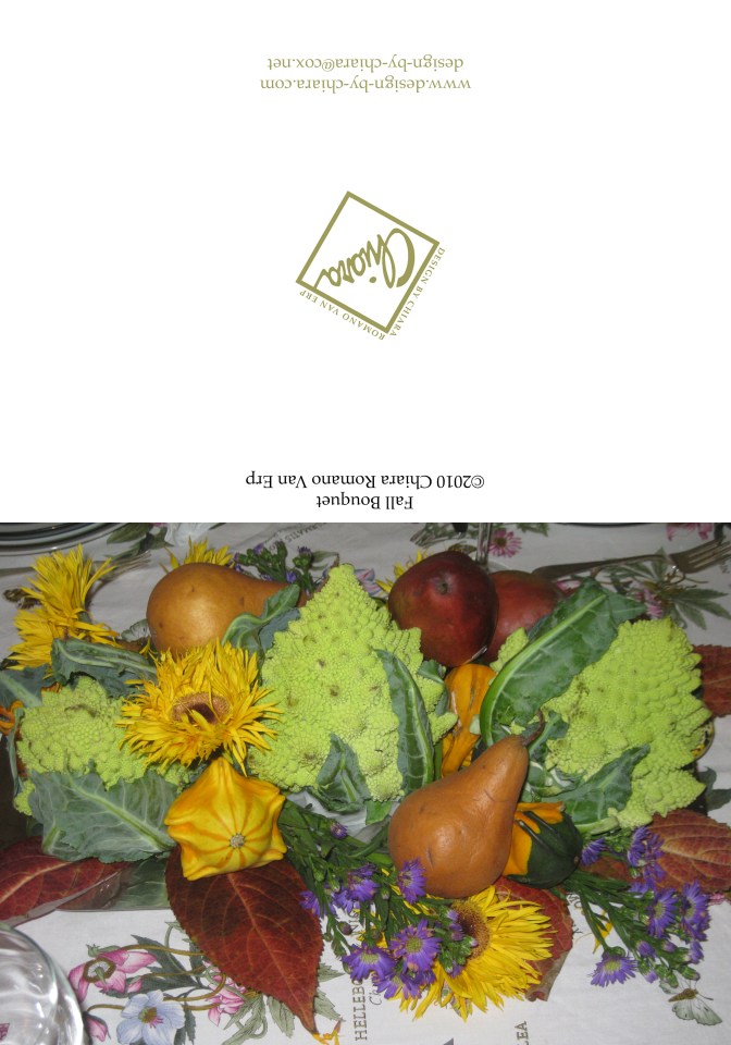Fall Bouquet ← Previous Next → FALL BOUQUET ©2013 Chiara Romano Van Erp Share this: Click to share on X (Opens in new window) X Click to share on Facebook (Opens in new window) Facebook Click to share on LinkedIn (Opens in new window) LinkedIn Like Loading...